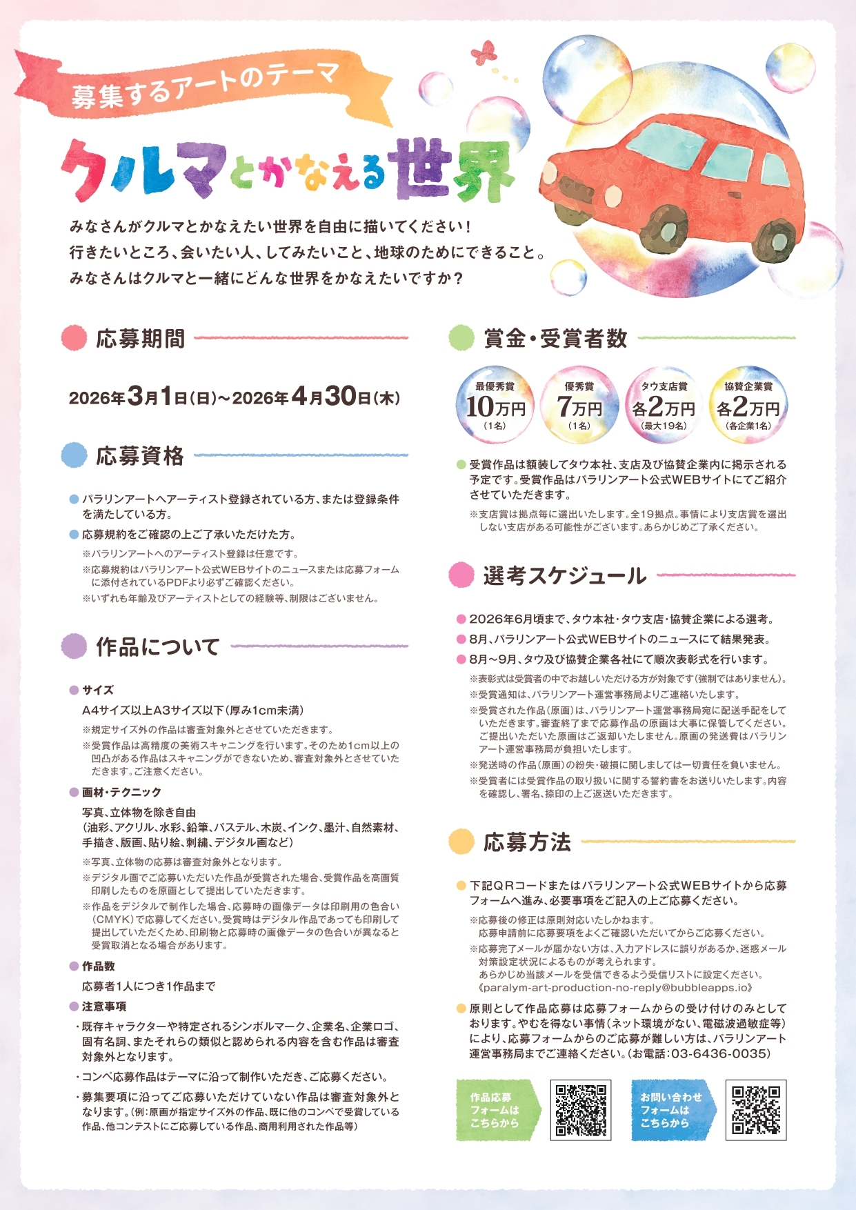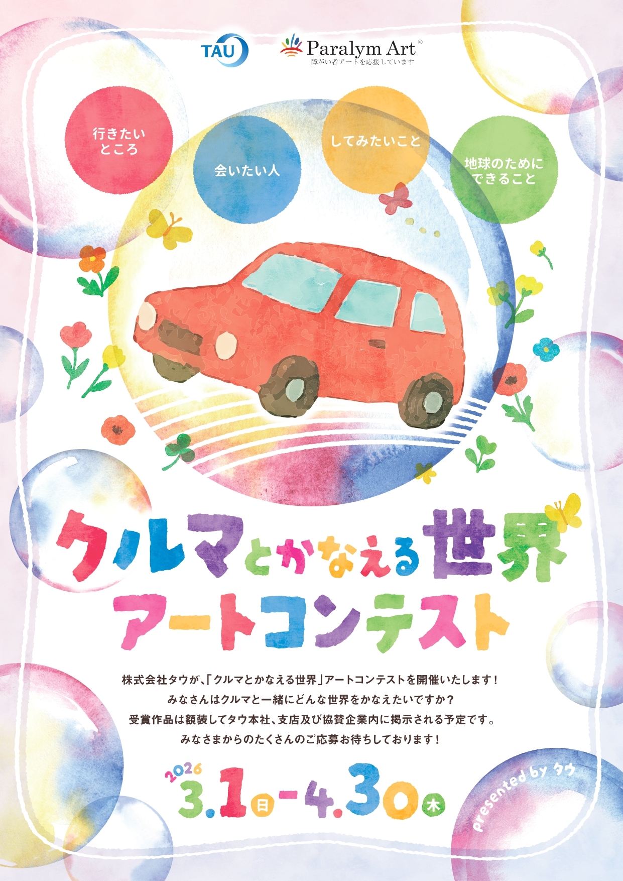 「クルマとかなえる世界」を描くアートコンテスト2026 presented by 株式会社タウ